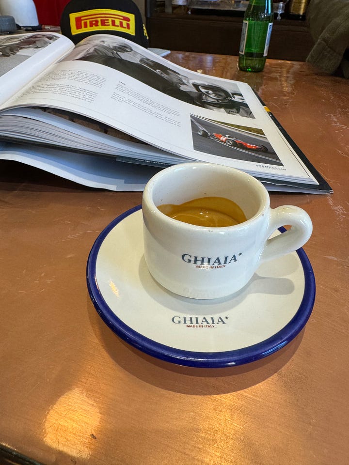 Despite the clothes at Ghiaia being more aligned with how I see myself dressing in 5-10 years, the feeling you get when you walk in is hard to describe. You enter a world that Davide has built so meticulously—from the custom espresso cups to the signature mannequins, it makes you wonder why more brands don’t follow suit. Because after all, if your employees would rather be at work than at home, your customers might feel the same way too.